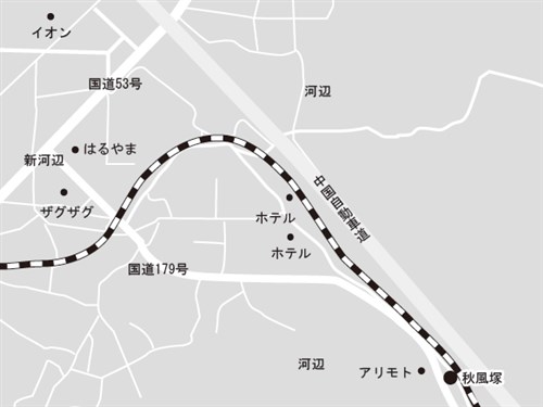 津山ICより南下、新河辺交差点を東(美作方面)に約5分